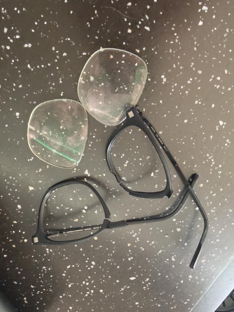 There was a strange half-second in which I saw them not as my glasses, but as an object belonging to the wind. They flew, hit the asphalt, and broke apart. Frame, lenses, pieces, all suddenly separate. We spent the next several minutes in that very specific kind of practical panic, scanning the ground, retracing the invisible path of impact, trying to think like a disaster scene investigator for prescription eyewear.